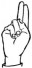 На ћирилици написано МИЛЕНА СЕКУЛОВ састоји се из 13 слова [?]. Исписано ћириличном једноручном азбуком за глувонеме: